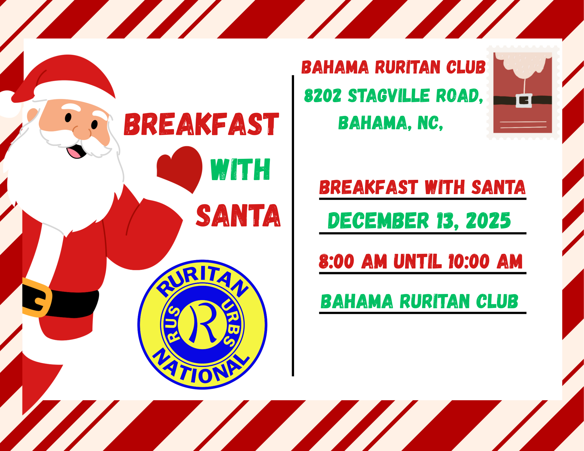 Breakfast with Santa, Saturday December 13, December 2025, Bahama Ruritan Club